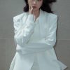 MOSS ARTISAN SUIT mang tông màu xanh rêu độc bản phối cùng đóa hoa lụa trắng đính kết thủ công tỉ mỉ. Thiết kế phom đứng hiện đại, vừa quyền lực vừa nữ tính, là lựa chọn hoàn hảo cho những quý cô yêu thích phong cách sang trọng và khác biệt.