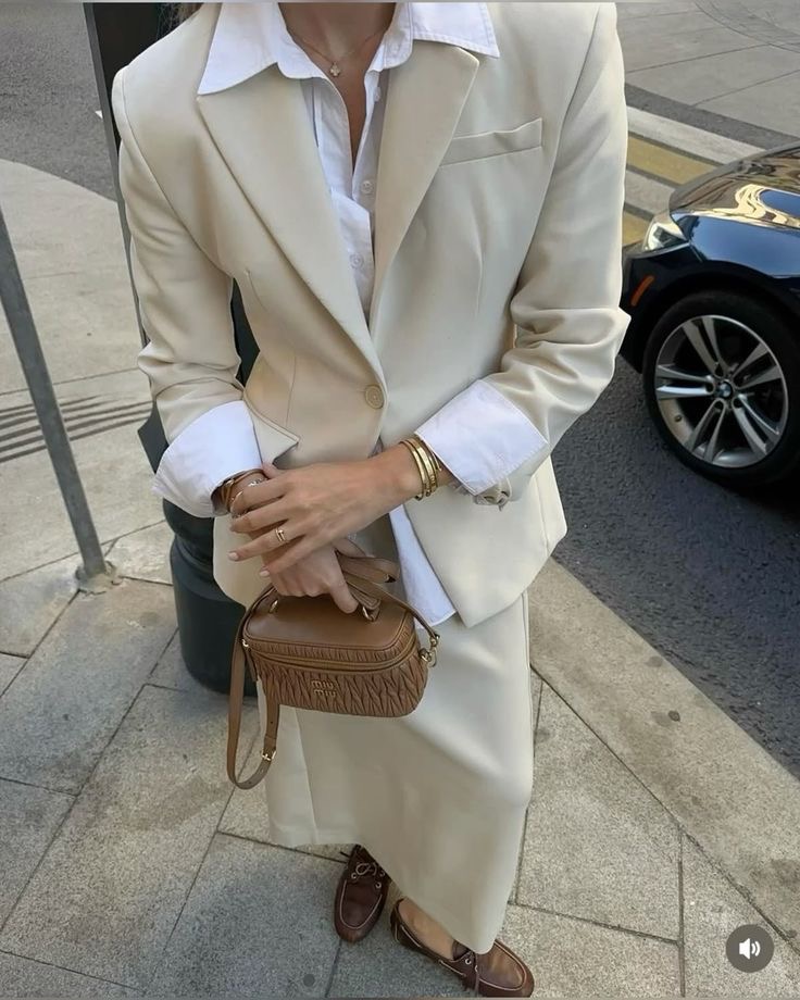 Sự kết hợp Monochrome: Sự phối hợp hoàn hảo giữa sắc Ivory thượng hạng và sơ mi trắng tinh khôi, tạo nên vẻ ngoài quyền quý và đầy tri thức.